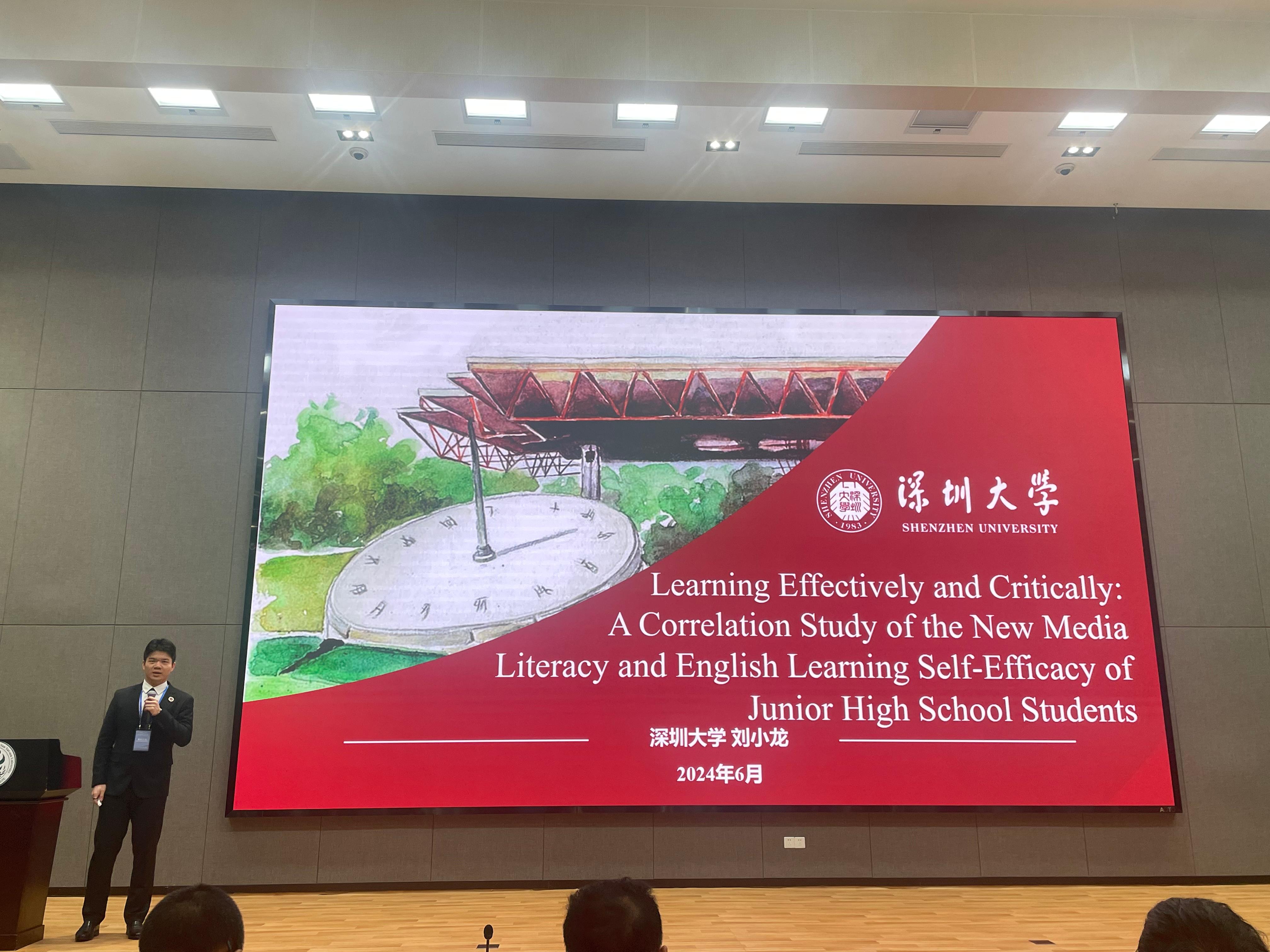 會議收到了來自全國各地高校共140余份高質(zhì)量論文,經(jīng)由粵港澳專家組匿名評審,由深圳大學(xué)外國語學(xué)院副院長張丹陽指導(dǎo)的2023級外國語言文學(xué)方向劉小龍同學(xué)的論文:Learning Effectively and Critically: A Correlation Study of the New Media Literacy and English Learning Self-efficacy of Junior High School Students被活動大獎賽論文集收錄(該論文同時被北京外國語大學(xué)2024年研究生高端學(xué)術(shù)論壇暨第六屆英語語言文學(xué)研究生論壇收錄,并進行線上宣讀)。劉小龍同學(xué)受邀參加本次學(xué)術(shù)交流周活動,并在論文大獎賽進行現(xiàn)場答辯,榮獲三等獎(排名前六)。