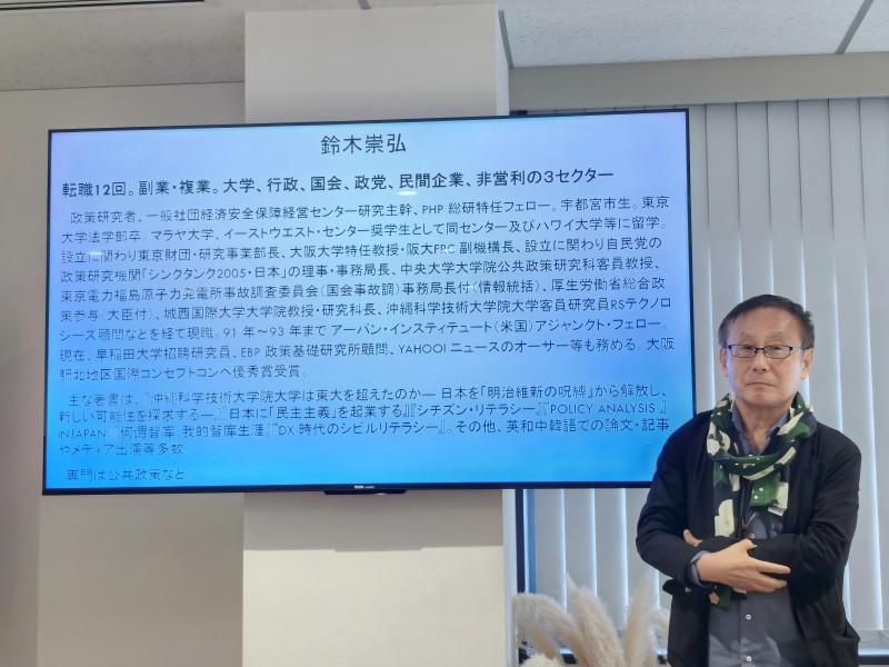 鈴木崇弘教授為研學團詳細介紹了日本的經濟變遷情況,并與中國的經濟發展進行了對比分析。鈴木先生通過豐富的數據和生動的案例,展示了日本從戰后經濟復興到經濟高速增長、再到泡沫經濟破裂及后來的經濟結構調整的全過程。他特別強調了政府在經濟發展中的角色與作用,以及制度創新對經濟發展的推動作用。同時,鈴木教授也指出了中國經濟在快速發展過程中面臨的挑戰與機遇。通過鈴木教授的講解,研學團深刻認識到了中日兩國在經濟發展道路上的異同之處,為我國公共管理的實踐提供了有益的啟示。