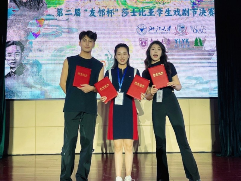 第二屆“友鄰杯”莎士比亞學(xué)生戲劇節(jié)經(jīng)過初賽、復(fù)賽,于2024年9月21日在浙江大學(xué)紫金港校區(qū)舉行決賽并圓滿落幕。深圳大學(xué)藝術(shù)學(xué)部戲劇影視學(xué)院表演專業(yè)2022級學(xué)生文珺瑤與邱德茂表演的作品《麥克白》獲評委會高度好評,作為示范劇目獲評為戲劇節(jié)決賽二等獎、“最佳女主角”、“最佳舞臺時刻獎”、“最佳音樂設(shè)計(jì)獎”等四個獎項(xiàng)。