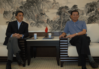 9月13日下午,校黨委書記江潭瑜在辦公樓205會見觀瀾湖高爾夫球會執行董事葉錦傳,雙方就我校高爾夫學院學生服務于觀瀾湖舉辦的高爾夫世界杯,以及有關合作事宜進行洽談。