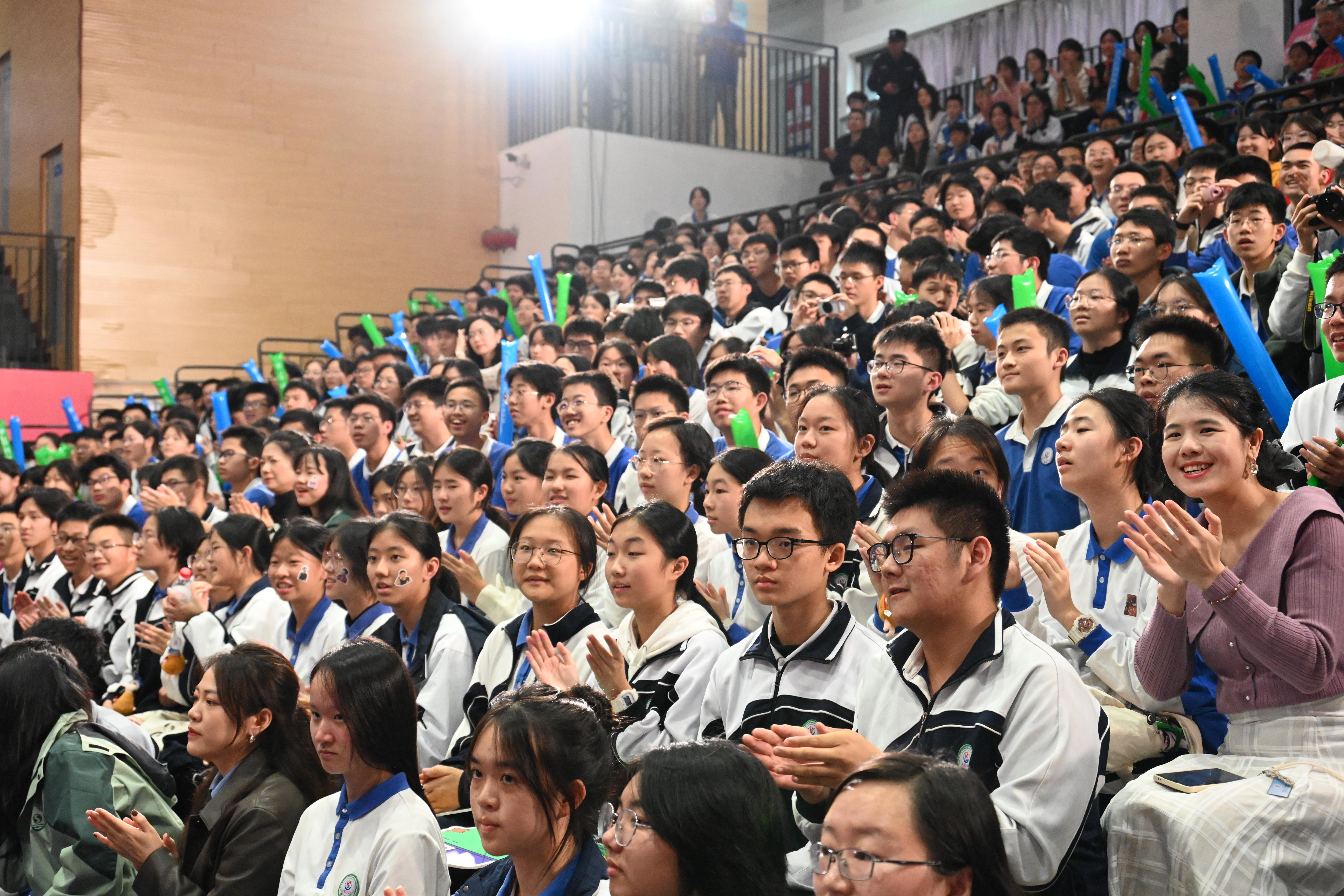 深大附中副校長邊海峰在致辭中表示,深大附中堅持體教融合,扎實推進“每天一節體育課”,貫徹落實立德樹人的根本任務,將大思政課延伸到校園的每個角落,讓學生在廣闊的天地中接受思想的洗禮和熏陶,實現身心的滋養和進步,努力成為有理想、有擔當、有拼搏精神的“拿云少年”。他希望深大附中的“拿云少年”以奧運冠軍為榜樣,在今后的學習生活中,直面困難和挑戰,用辛勤的汗水、堅韌的品格,為實現個人理想而持續奮斗,為祖國繁榮富強貢獻自己的青春力量。