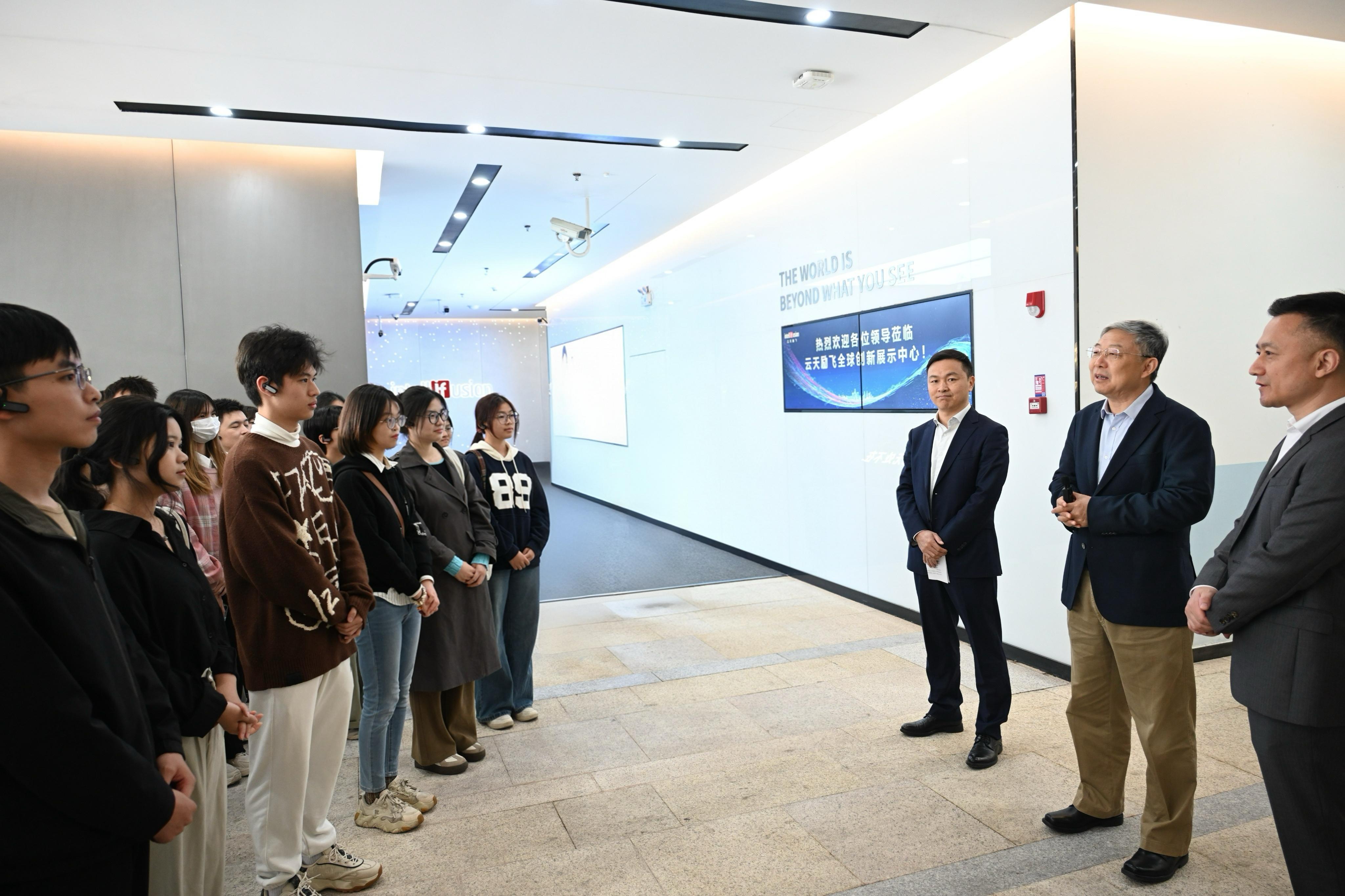 李清泉首先帶領師生來到深圳云天勵飛技術股份有限公司。在云天勵飛全球創新展示中心的光影下,師生們開啟了一場未來之旅。智能化交互、沉浸式體驗,讓師生感受AI創新的力量。
