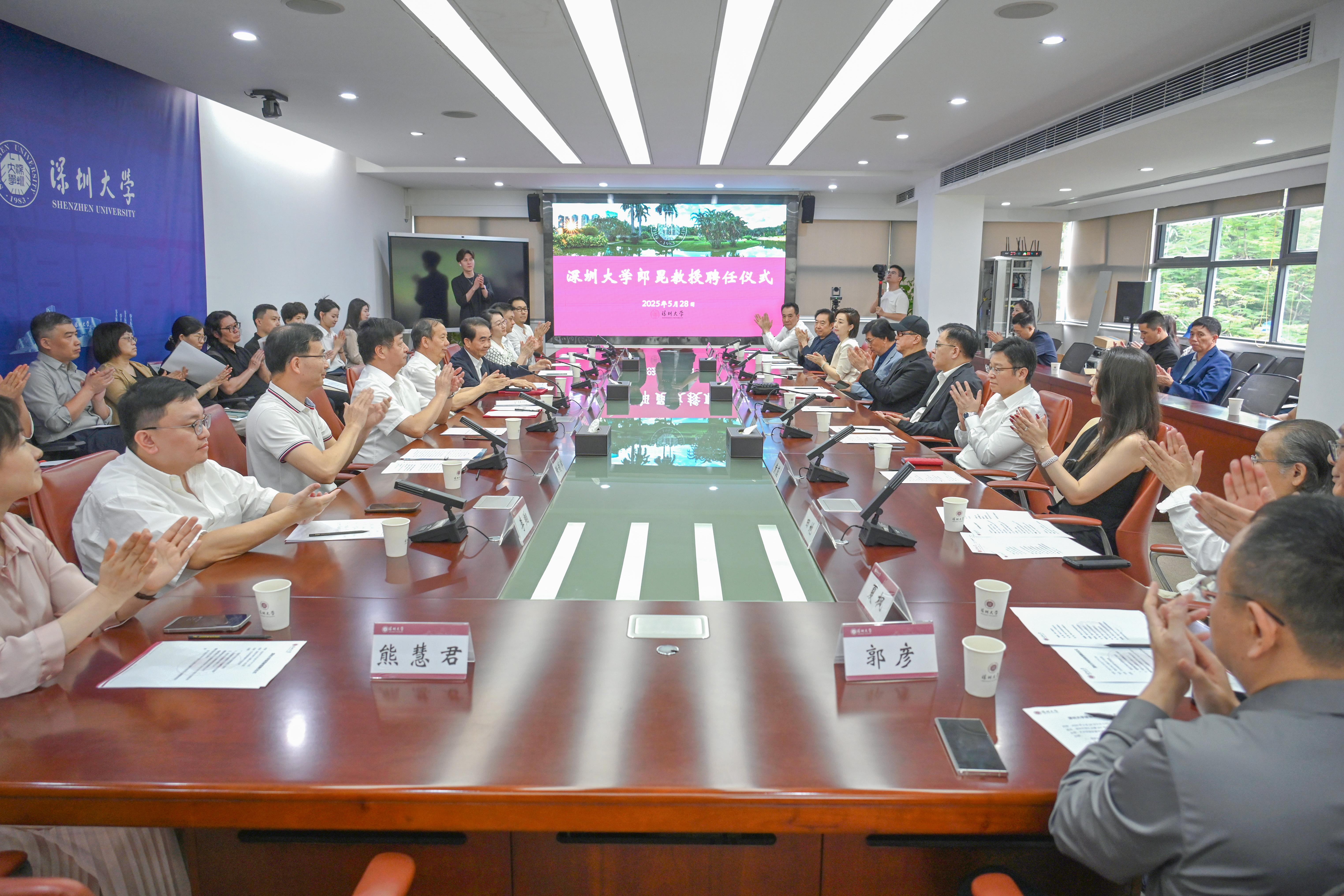 5月28日下午,深圳大學郎昆教授聘任儀式在深圳大學粵海校區舉行。第十五屆全國運動會和殘特奧會開幕式總導演郎昆受聘為深圳大學中國文化國際傳播研究院院長。儀式上,深圳大學校長毛軍發向郎昆頒授聘書。