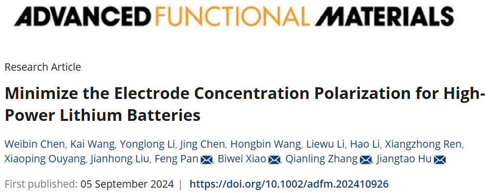 1. 深圳大學化學與環境工程學院張黔玲教授團隊在材料領域頂尖期刊Advanced Functional Materials(影響因子18.5,中科院JCR 1區)發表了題為“Minimize the Electrode Concentration Polarization for High-Power Lithium Batteries”的研究論文。該團隊碩士研究生陳偉彬和中山大學王凱為論文共同第一作者,深圳大學胡江濤副教授、張黔玲教授,有研(廣東)新材料技術研究院肖必威教授,北京大學潘鋒教授為該論文通訊作者,深圳大學為第一作者單位和第一通訊單位。