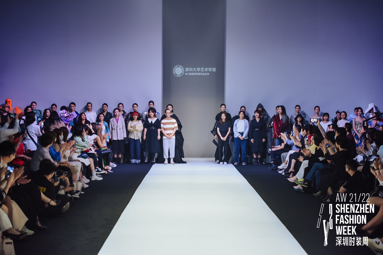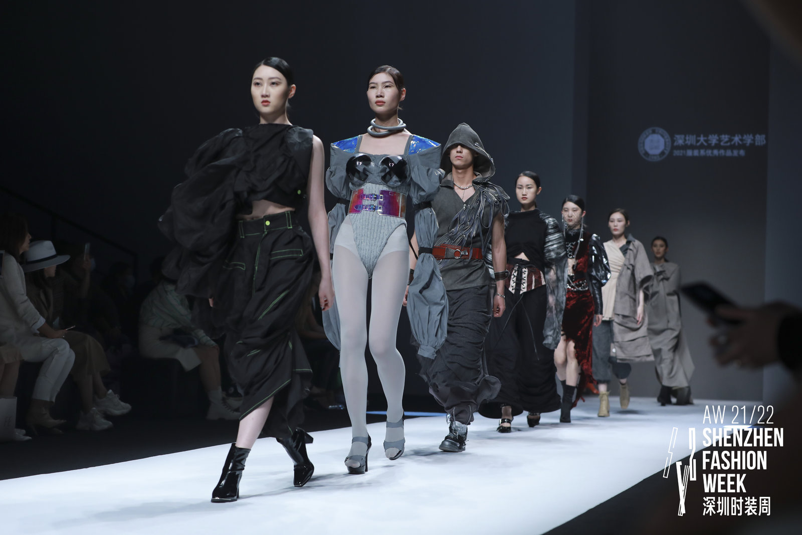 作為AW21/22深圳時裝周的重要活動之一,本次優秀作品發布會將深圳大學的時尚創新力量集中展現。該畢業展演由服裝系師生歷時數月共同策劃完成,從50名畢業生作品中優選56套作品。此次活動不僅得到了深圳市服裝行業協會的大力支持,也得到了維歐、尚帝文化傳媒、森羅文化社團、深圳大學Vision協會等相關企業及社團的通力支持,顯示了校企之間密切合作的成果,為行業優秀人才的培養做出了顯著的貢獻。